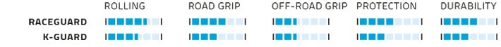 Continental ja Schwalbe käyttävät molemmat 7-asteikkoa ja olemme päättäneet merkitä luokan 1-3 matalaksi, 4-5 keskitasoksi ja 6-7 korkeaksi.