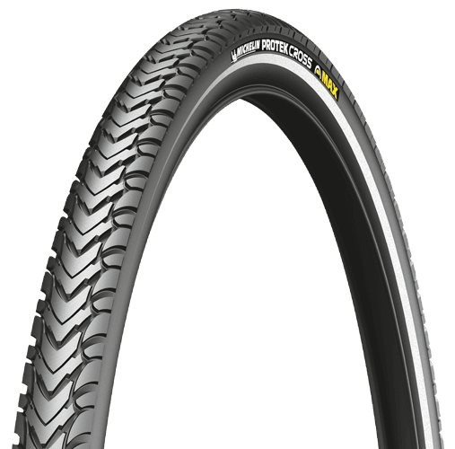 Vankka Michelin Protek Cross Max viihtyy lähes yhtä hyvin tasaisella asfaltilla kuin kuoppaisilla sorateillä ja helpoilla metsäpoluilla. Pintakuviointi ja kulutuspintaan käytetty kumiseos tarjoavat alhaisen vierintävastuksen yhdessä luotettavan pidon kanssa, kun tie mutkittelee, lisäksi sekä aurinkoisella ja kuivalla säällä että sateisella ja huonommalla säällä. Tämä hyvin pitävä touring-rengas on varustettu Protek Maxilla, tukevalla 5 mm paksulla puhkeamissuojalla, joka tekee renkaasta lähes mahdottoman puhkaista ja lisää merkittävästi turvallisuuttasi satulassa. Sen heijastava nauha sivuseinämässä lisää näkyvyyttä ja parantaa turvallisuutta heikossa valaistuksessa.