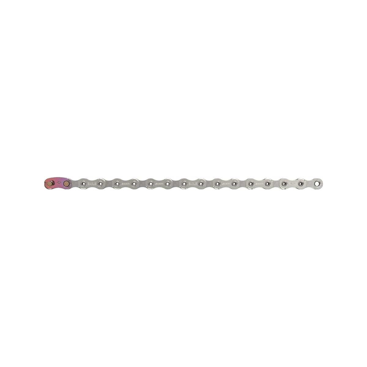 SRAM PC-X01 Eagle 12 speed kromipäällysteinen ketju ontoilla pinneillä ja PowerLock Flowlink pikaliittimellä Eagle osasarjaan. 126 linkkiä.