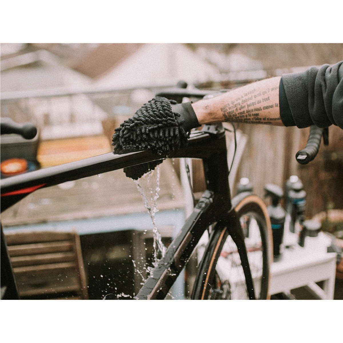 Dynamic Microfibre Bike Cleaning Glove Pese pyöräsi perusteellisesti likaantumatta käsistä. Hanska on päällystetty mikrokuidulla molemmilta puolilta, mikä imee tehokkaasti vettä ja saippuaa helppoa ja sujuvaa puhdistusta varten. Se on tehokas likaa vastaan, mutta hellävarainen runkoa ja komponentteja kohtaan.