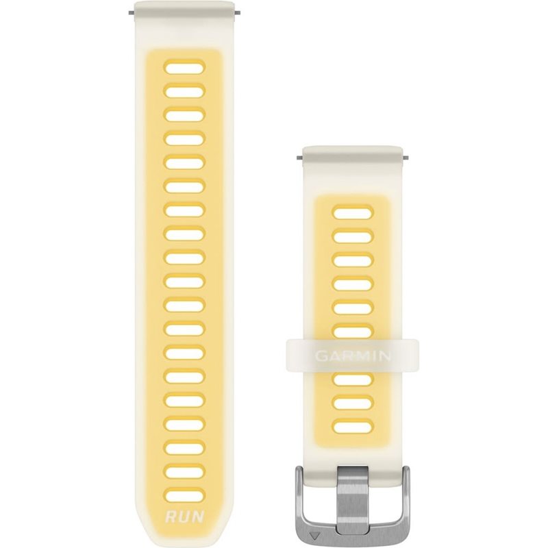 Tämä Garmin QuickFit 20 mm:n kellon ranneke on erityisesti suunniteltu Forerunner 570:lle ja yhdistää mukavuuden, tyylin ja käytännöllisyyden. Vesi- ja hikoilunkestävästä silikonista valmistettu ranneke tuntuu iholla kevyeltä ja ilmavalta – olitpa sitten juoksemassa, pyöräilemässä tai treenaamassa salilla. Garminin älykkäiden pikakiinnikkeiden ansiosta vaihdat sen sekunneissa ilman työkaluja, ja säädettävä muotoilu takaa täydellisen istuvuuden useimpiin ranteen kokoihin.