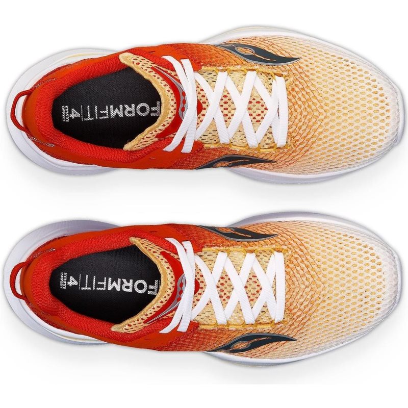 Saucony Kinvara 14 on kenkä, jota voit käyttää lyhyisiin ja nopeisiin harjoituksiin, intervalleihin, kilpailuihin, tekniikkaharjoitteluun ja voimaharjoitteluun. Se on siksi varsin monipuolinen kenkä omassa pienessä markkinarakossaan. Kinvara on aina ollut suosittu malli ja tämä versio on kevyin koskaan. Tämän 14. painoksen päällinen on ohuempi ja hengittävämpi kuin 13. painoksen, joten kengästä on yksinkertaisesti tullut kevyempi. Saucony on pitänyt kiinni suositusta FORMFIT 360 -teknologiastaan, jonka ansiosta kenkä istuu todella hyvin jalkaan. Se on kenkä sinulle, joka haluat nopeutta, mutta haluat silti olla kosketuksissa pintaan.