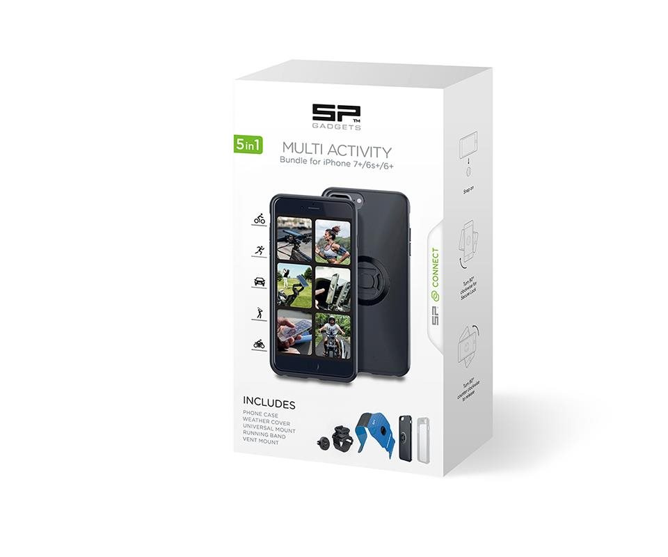 Lisävarustesetti SP Connect Multi Activity Bundle iPhone 6s+/6+/7+/8+ tarjoaa parhaan ratkaisun käyttääksesi laitettasi vieläkin monipuolisemmin erilaisissa toiminnoissa. Sarja on kattava ja sisältää sekä puhelimen suojakotelon että useita muita osia, jotka voivat olla tarpeellisia matkapuhelimesi kiinnittämiseksi pyörään, moottoripyörään, kuntoilulaitteisiin, golfkärryyn tai yksinkertaisesti käsivarteen.