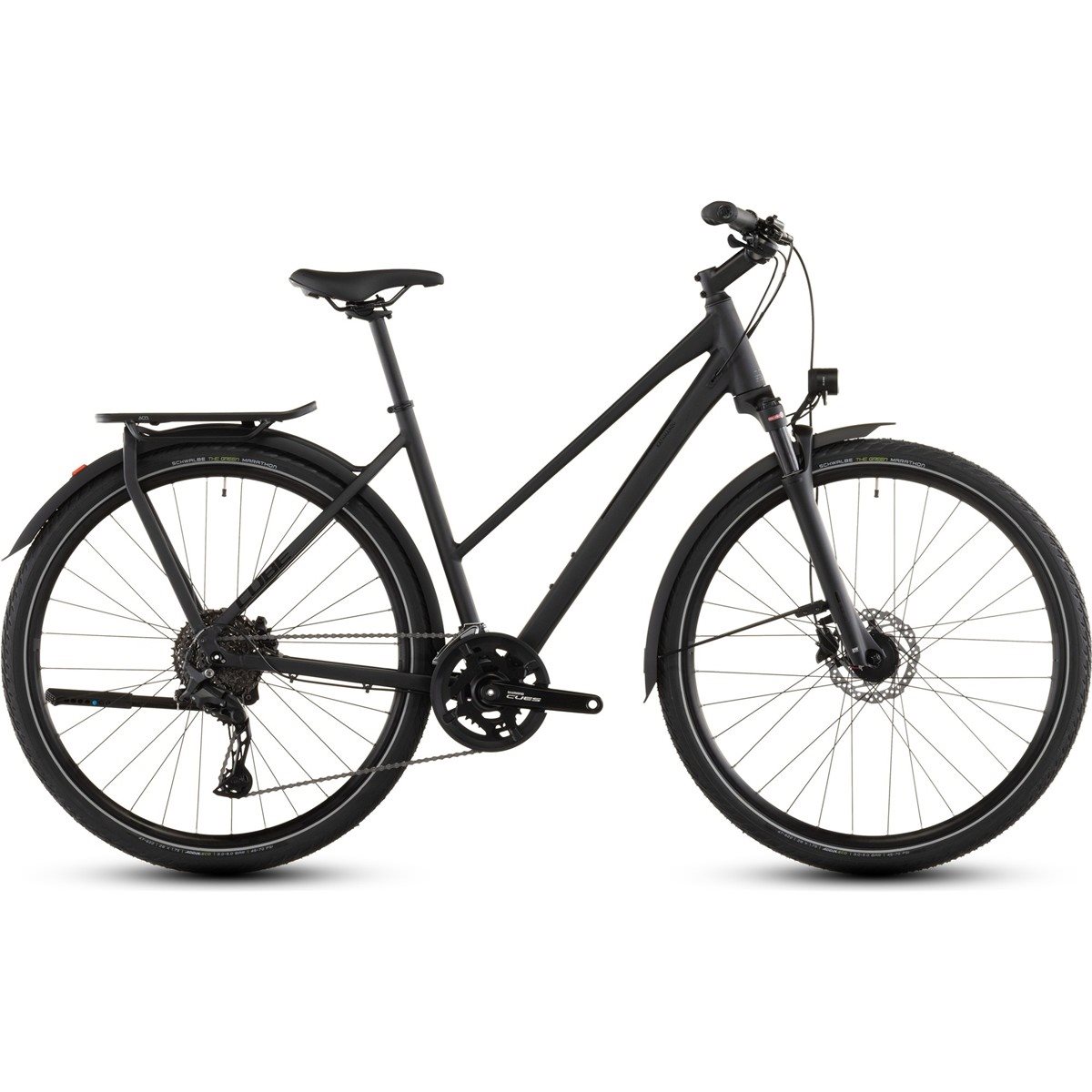 Runko koostuu ensiluokkaisesta kaksoiskarkaistusta alumiinista, joka on sekä kestävä että muodoiltaan sellainen, että se pystyy ongelmitta käsittelemään kaikki pyöräilytyypit, joita saatat kohdata. Sen moderni geometria, Trekking Comfort Geometry, tarjoaa luotettavan ohjattavuuden, jota tarvitset navigoidaksesi turvallisesti ja sujuvasti kaikessa hektisestä kaupunkiliikenteestä sotkuisiin metsäpoluille mukavalla ja tehokkaalla tavalla. Se on lisäksi varustettu monenlaisilla lisävarusteilla jo valmiiksi – lokasuojat, supervakaa pakettiteline, ketjusuoja, tuki ja valaistus. Täydellinen sinulle, joka haluat käytännöllisen kulkupelin, joka loistaa kaikissa sääolosuhteissa ja haluat myös näkyä pimeän tultua.