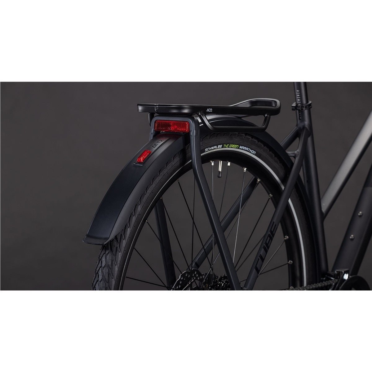 - Pitävät 29-tuumaiset Schwalbelta (Marathon Green), jotka tarjoavat tehokkaan etenemiskyvyn kaikilla alustoilla