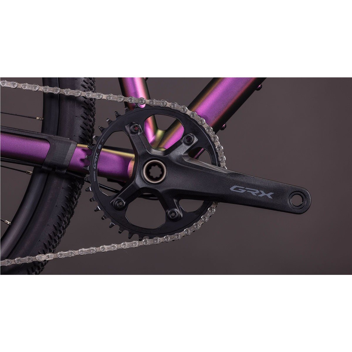 - Tehokas 12-vaihteinen 1x-voimansiirto Shimanolta (GRX RX822/610) vaikuttavan laajalla välitysalueella (40Tx10-51T)