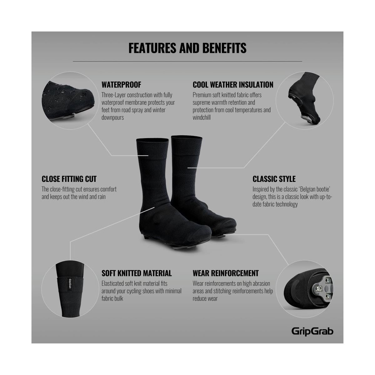 Vaatteet & varusteet / Kengänsuojat / GripGrab Flandrien Vedenpitävät maantie-kengänsuojat Black