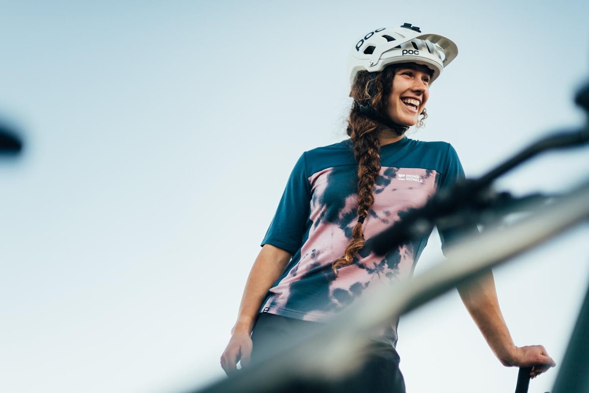 Mons Royale Naisten pyöräilypaita Redwood Enduro VT SS Shirt Women Denim Tie Dye