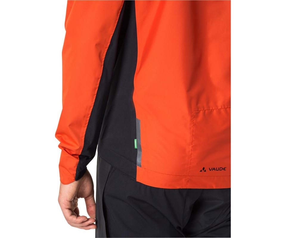 Takki on valmistettu pääosin kierrätetyistä materiaaleista, ja siinä on VAUDEn PFC-vapaa, vettä ja likaa hylkivä Eco Finish -viimeistely, joka on sekä nopeasti kuivuva että hengittävä. VAUDE Green Shape -merkki on tae ympäristöystävällisistä ja toimivista tuotteista, jotka valmistetaan kestävistä materiaaleista. Riippumattoman Fair Wear -järjestön jäsenenä VAUDE on sitoutunut myös oikeudenmukaisiin työoloihin ja palkkoihin.