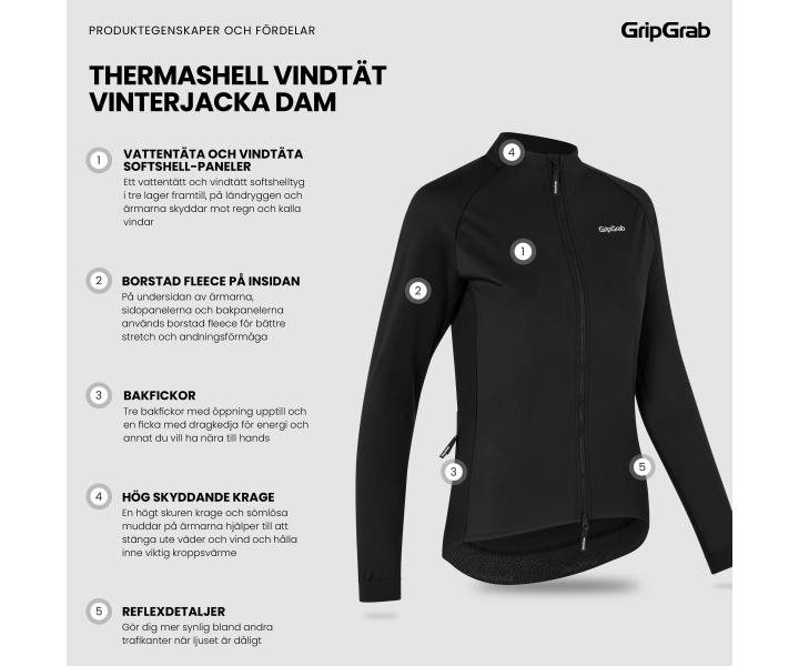 GripGrab PACR Tuulenpitävä Naisten talvipyöräilytakki Black