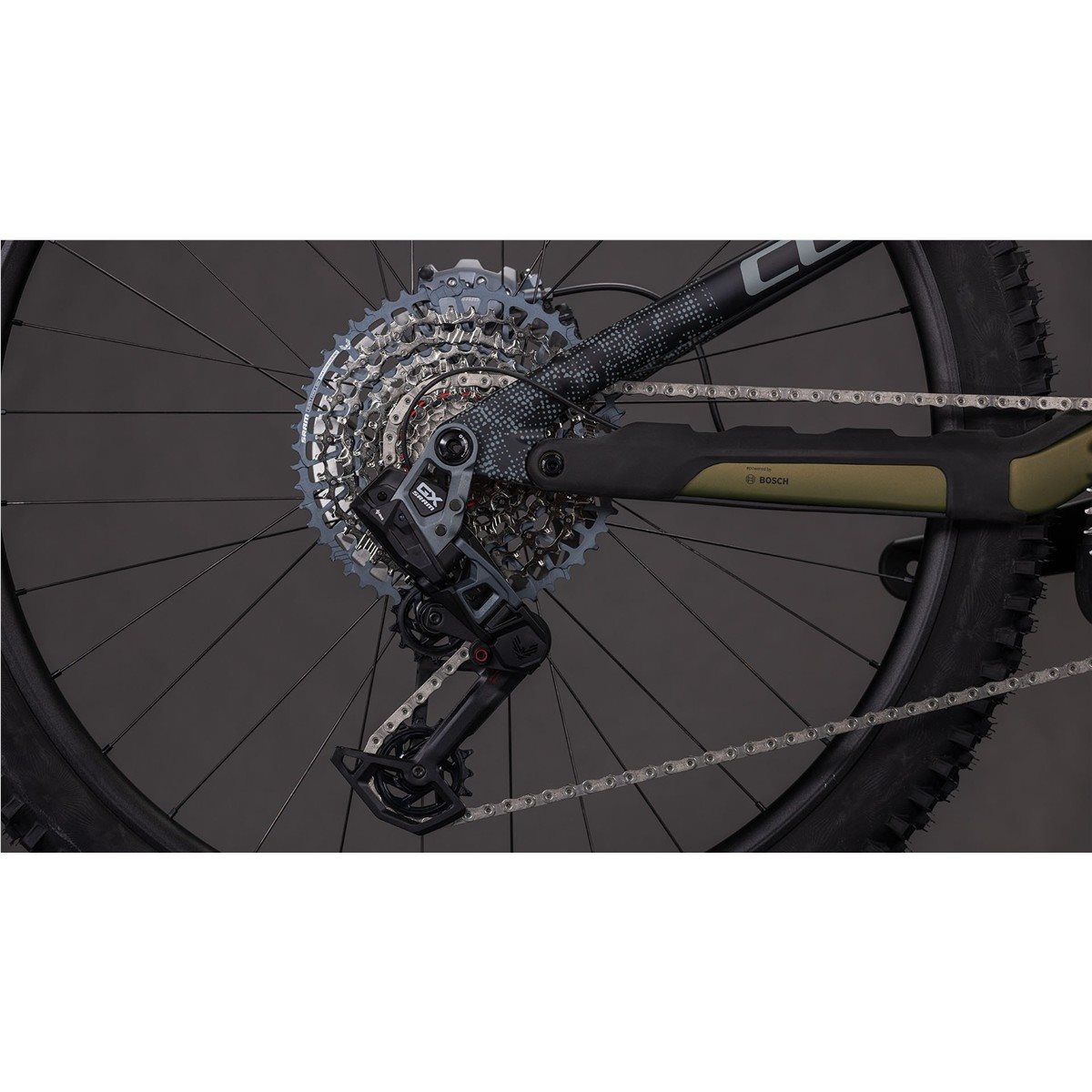 - erittäin tehokas 12-vaihteinen 1x-voimansiirto sramilta (gx eagle axs) langattomalla ohjauksella