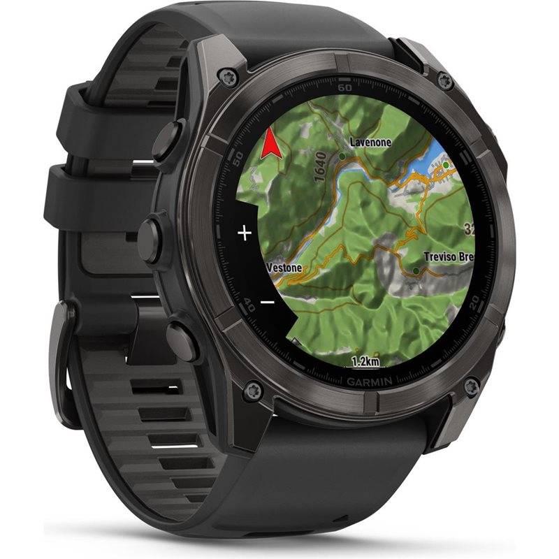 Huipputason Garmin fēnix 8 - 51 mm on sukellusluokiteltu älykello, joka on rakennettu kestämään ja siinä on vuotamattomat napit, metallinen anturisuoja sekä kirkas ja selkeä AMOLED-näyttö. Kello on testattu Yhdysvaltain sotilasstandardin mukaisesti lämpö-, isku- ja vesitiiviyden osalta. Se tarjoaa jopa 29 päivän akunkeston älykellotilassa (13 päivää, kun valitset jatkuvan päälläolon). Sisäänrakennettu LED-taskulamppu, jossa on useita kirkkaustasoja ja punainen turvallisuusvalo, parantaa valmiuttasi pimeässä ja tarjoaa kätevän valaistuksen tarvittaessa. Vilkkumistila voi myös sopeutua juoksukadenssiisi.