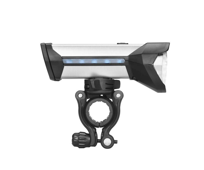 Tyylikäs premium-valaistus alumiinikotelossa, suunniteltu valaisemaan vaativimmissakin olosuhteissa. - 100 Lux >2,5h - 50 Lux >6h - 15 Lux ~25h Akkutilan osoitin viidellä tasolla; 100% - 80% - 60% - 40% - 20% Ladataan USB-kaapelilla. Täyslataus noin 3 tunnissa. Voidaan käyttää varavirtalähteenä, esimerkiksi matkapuhelimen lataamiseen. Mukana tulee kiinnike ohjaustankoon, halkaisijaltaan 22-32 mm.