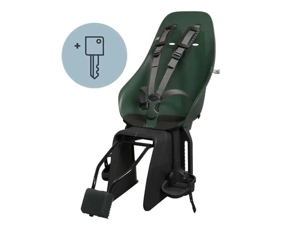 Asennus on helppoa intuitiivisen click & go -kiinnitysjärjestelmän ansiosta, joka on suunniteltu sopimaan saumattomasti pyöräsi runkoon. Taakse asennettavassa Ta-Ke-tuolissa on myös integroitu metallilukko, jonka avulla voit turvata istuimen omalla avaimellasi ja tuntea olosi rauhalliseksi jättäessäsi pyörän valvomatta.
