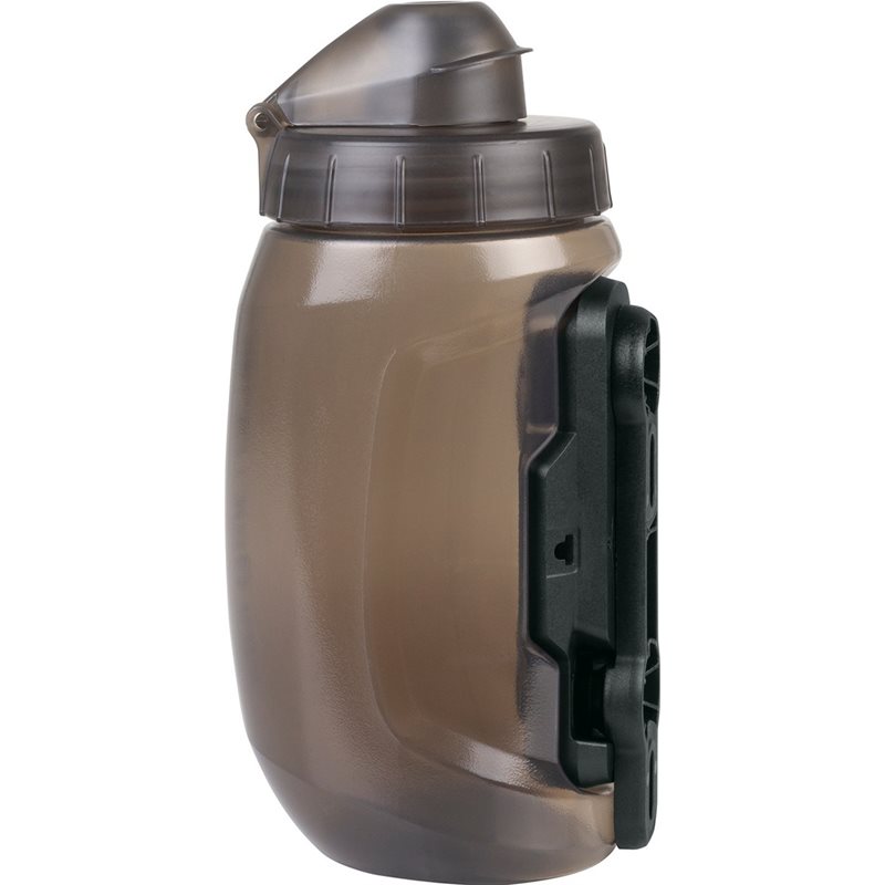MonkeyBottle TWIST (450 ml) -juomapullo magneettikiinnikkeellä sopii myös kapeampiin pyörän runkoihin. Se tarttuu automaattisesti paikoilleen, kun se tuodaan Fidlock Twist -kiinnitysalustan yläpuolelle ja irtoaa sivulle kiertämällä.