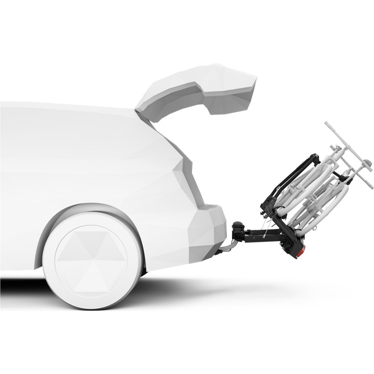 Helppo pääsy tavaratilaan Pyöräteline on suunniteltu mukavaan tavaratilan käyttöön – jopa kun pyörät on asennettu. Paina vain jalkapoljinta, kallista telinettä ja pääse käsiksi tavaratilaan. Toinen uusi ominaisuus 3-pyöräversiossa on mahdollisuus muuttaa kallistuskulmaa 50°:sta 70°:een, mikä tekee siitä yhteensopivan useampien kompaktien tila-autojen takaluukkujen kanssa.