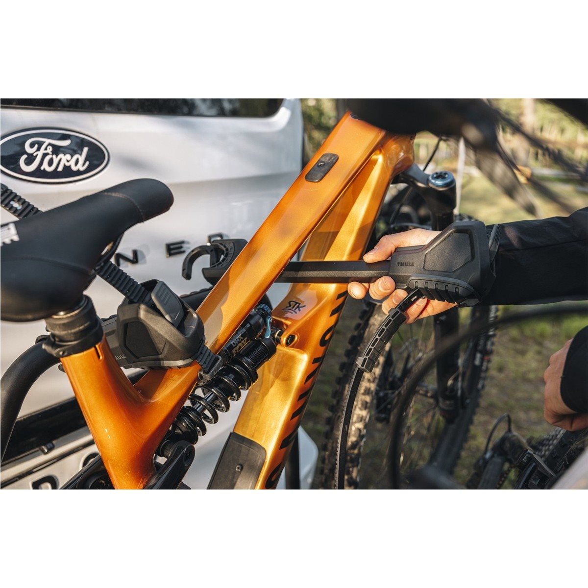 - Laajennettava asennus – valinnainen adapteri mahdollistaa kolmannen tai neljännen pyörän kuljettamisen. Adapteri myydään erikseen.