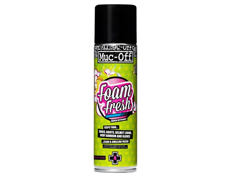 Puhdistusaine Muc-Off Foam Fresh Cleaner 250 ml avulla voit päivittää koko pyöräilyvarusteesi, kypärästä suojavaatteisiin asti. Tehokas ja helppokäyttöinen vaahtopuhdistaja on erinomainen valinta esimerkiksi kypärän sisäpuolen tai muiden pehmeiden materiaalien puhdistukseen, jotka ovat kosketuksissa pyöräilijän kanssa. Tuote sopii erinomaisesti käytettäväksi hanskoissa, kengissä, vuorauksissa ja suojavaatteissa. Sen välitön vaahtoava vaikutus poistaa lian varoen ja jättää jälkeensä raikkaan tuoksun. Se auttaa myös hävittämään epämiellyttävät hajut, ja korvaa ne huomattavasti miellyttävämmällä sitrustuoksulla.
