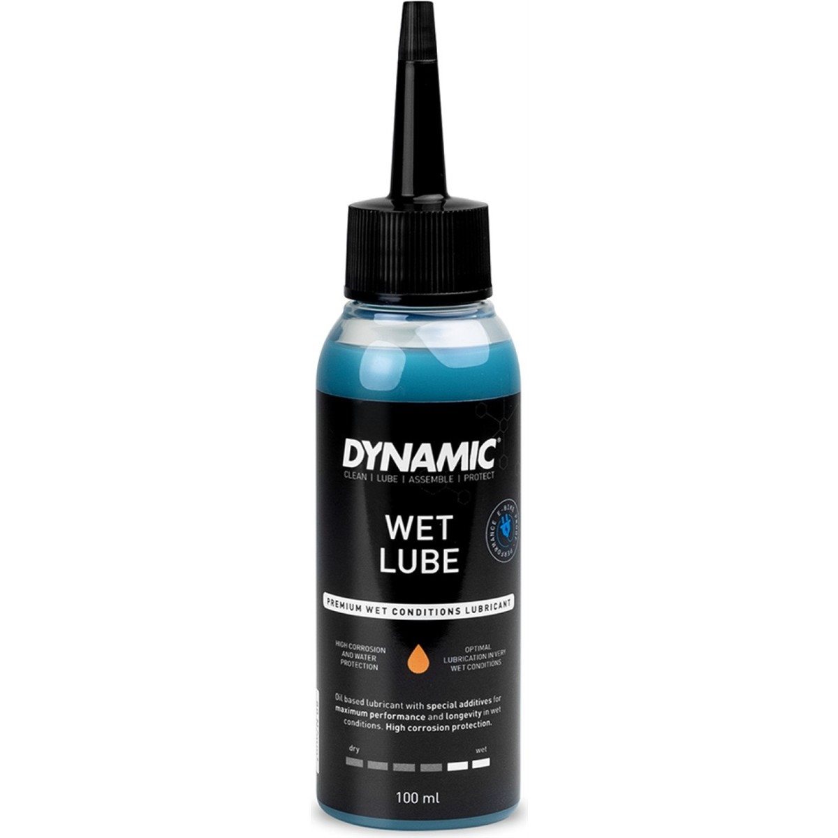 Dynamic Bike Care Wet Lube on tehokas voiteluaine märkiin ja mutaisiin ajo-olosuhteisiin. Se pitää voimansiirron silkinpehmeänä, vähentää kitkaa ja suojaa korroosiolta. Korkea läpäisykyky takaa tasaisen voitelun jakautumisen koko ketjuun.