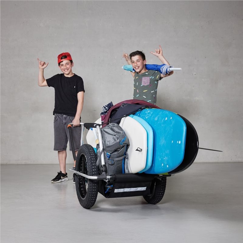 Reacha Sport Beach on täydellinen kärry pitkien ja tilaa vievien esineiden kuljettamiseen, kuten kajakien, SUP-laudan tai rantatuolien. Ulosvedettävä vetotanko ja säädettävä runko mukautuvat helposti tarpeisiisi. Kätevän Bike Connector -kiinnikkeen ansiosta voit vaihtaa vaivattomasti käsin vetämisen ja pyörään kiinnittämisen välillä, mikä tekee kuljetuksesta autolta rannalle stressitöntä.