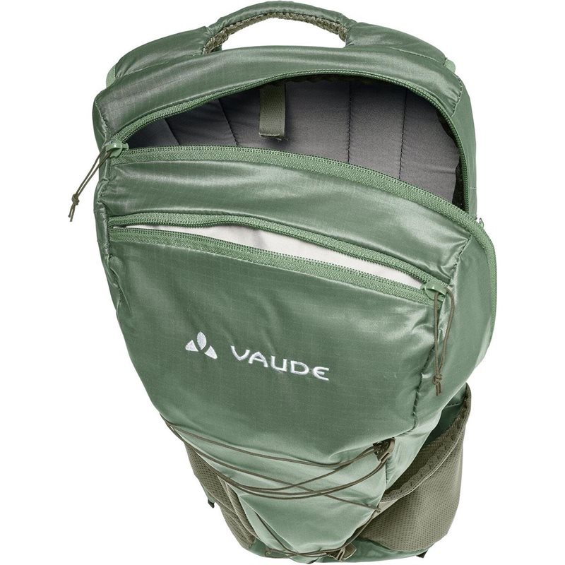 Olitpa sitten pyöräilemässä tai kävelyllä, luotettava kumppanisi VAUDE Uphill 12 Lightweight Backpack painaa vain 380 g. Minimalistinen muotoilu ja fiksut ominaisuudet takaavat täydellisen mukavuuden. Epäsymmetrinen pääosasto avautuu kätevästi, mukana on joustava verkkotasku sekä vetoketjullinen sivutasku, josta puhelimesi tai välipalasi on helposti saatavilla ilman, että sinun tarvitsee riisua kevyt pyöräilyreppu selästäsi. Edessä oleva kiristysnauha toimii varastona tuulitakille tai Sadetakille, pienempien kuormien kompressiona sekä sauvojen kiinnityspisteenä. Selkä- ja olkahihnojen 3D-verkkomateriaali takaa erinomaisen ilmanvaihdon, heijastavat yksityiskohdat on integroitu suunnitteluun, juomajärjestelmän liitäntäaukko sekä reppuun pakattava sadesuoja täydentävät tämän monipuolisen repun ominaisuuksia.