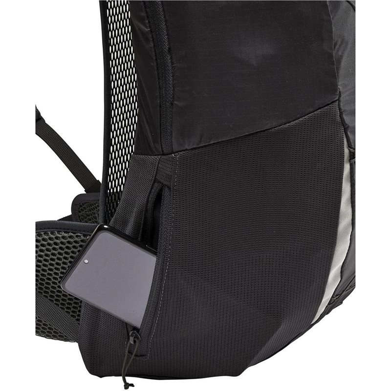 Vaude Uphill Air 18:ssa on monia käytännöllisiä ominaisuuksia, kuten vetoketjullinen etutasku pienten esineiden, esimerkiksi avainten ja matkapuhelimen, säilyttämiseen. Lisäksi siinä on 3-in-1-pakkausjärjestelmä, jonka avulla voit säätää repun tilavuutta tarpeesi mukaan.