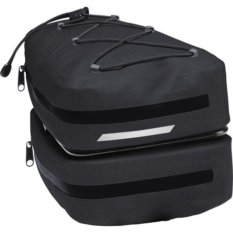 Vedenpitävä satulalaukku VAUDE Proof Offroad M Bike Saddlebag on täydellinen valinta minimalistista pyöräilijää varten. Tämä 8 litran laukku kiinnittyy vaivattomasti mukana tulevalla KLICKfix-järjestelmällä. Jopa 3 kg:n kantavuus tarjoaa runsaasti tilaa sekä luotettavan suojan vesiroiskeilta ja lialta. KLICKfix Contour-sovitin on integroitu laukun muotoiluun, ja sen ansiosta kaksi erillistä vetoketjullista osastoa asettuvat päällekkäin. Näin raskaat työkalut sijoittuvat alaosioon ja välipalat tai Sadetakki yläosioon. Laukun kannessa on lisäksi verkkotasku tuulitakille, käsineille tai Sadetakki, myös pyöräilyn aikana.
