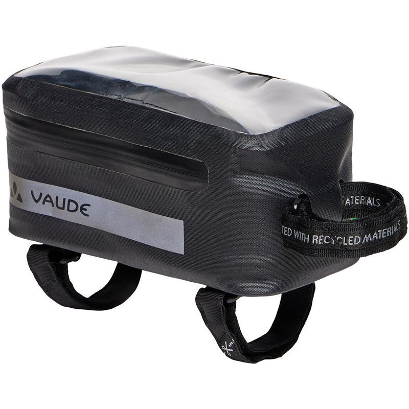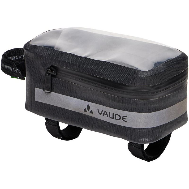 Kompakti VAUDE Screw-on Top Mobile Phone Bag Proof on täysin vedenpitävä jämäkän HF-hitsausrakenteensa ansiosta. Laukun vetoketju on vesitiivis, joten akkuun, pankkikortteihin tai avaimiin pääsee nopeasti. Kannessa on vesitiivis läpinäkyvä ikkunaluukku, johon mahtuu enintään 17 x 8 x 1 cm kokoisia navigointilaitteita, ja se suljetaan tiiviisti vetoketjulla. Tämä vesitiivis yläputkilaukku kiinnitetään pääputkeen ja ohjaustankoon kolmella tarranauhakiinnikkeellä, ja pohjassa on reiät halutulle ruuvikiinnitykselle. VAUDE Green Shape -merkki takaa ympäristöystävälliset, toiminnalliset tuotteet kestävästi valmistetuista materiaaleista. Fair Wear -järjestön jäsenenä VAUDE sitoutuu myös reiluihin työoloihin ja -palkkoihin.