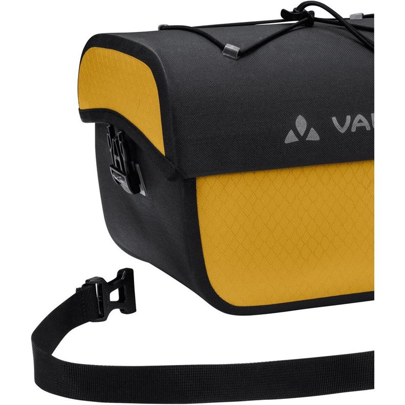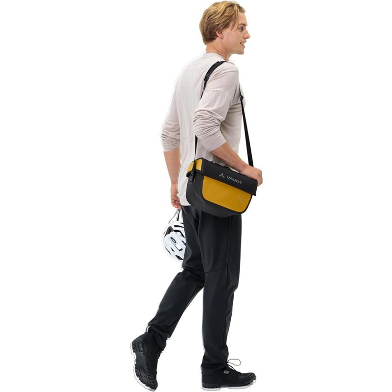 Polkupyörän ohjaustankolaukku Aqua Box, joka on valmistettu kierrätysmateriaaleista, pitää kaiken näkö- ja ulottuvillasi. Vedenpitävä ohjaustankolaukku avautuu yhdellä kädellä ja sisältää vetoketjullisen lisätaskun päälokeroon. Laukussa on irrotettava hihna, joten voit kantaa sitä mukavasti olkapäälläsi. Kannessa oleva joustava kiinnike mahdollistaa kätevien, läpinäkyvien pussien (Beguided small, Beguided big - myydään erikseen) kiinnittämisen navigointia varten tai käsineiden tai tuulitakin pikaiseen säilytykseen. Ohjaustankolaukku Aqua Box on yhteensopiva KLICKfix-järjestelmän kanssa, mikä tarkoittaa, että adapterilevy on esiasennettu ja KLICKfix-adapteri voidaan hankkia sopimaan täydellisesti ohjaustankoon (sekä tavalliseen että sähköpyörään) (myydään erikseen). Erittäin lujatekoinen ohjaustankolaukku on valmistettu hf-hitsatuilla vesitiiviillä saumoilla sekä 100 % kierrätetystä polyesteristä ja 100 % kierrätetystä polyamidista, ja se on valmistettu saksalaisessa VAUDE-tehtaassa.