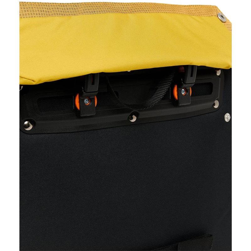 Kiinteä ja huomaamaton kiinnityslevy mahdollistaa laukun kiinnittämisen polkupyörän pakettiin (putken halkaisija Ø 8–16 mm) QMR-koukuilla. Laukun voi lukita suoraan QMR-koukkuun U-lukolla (ei sis. lukkoa). Alaosan tarrakiinnikkeet lisäävät vakautta, ja olkahihna mahtuu sivussa olevaan verkkotaskuun. Heijastavat yksityiskohdat ja lamppukiinnityssilmukka parantavat näkyvyyttä hämärässä.