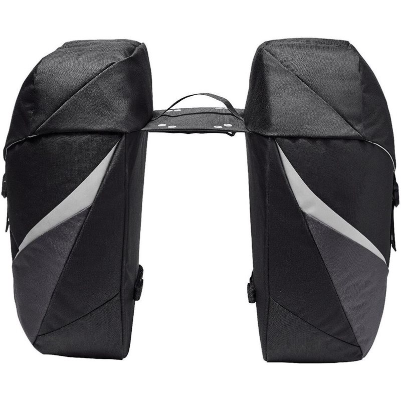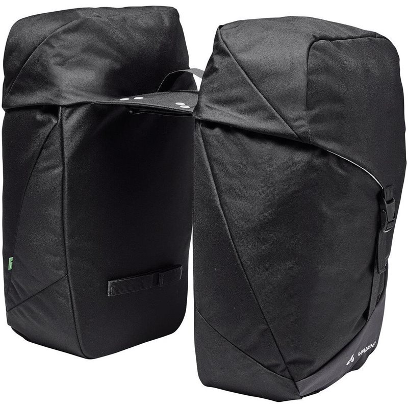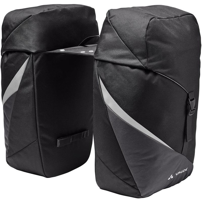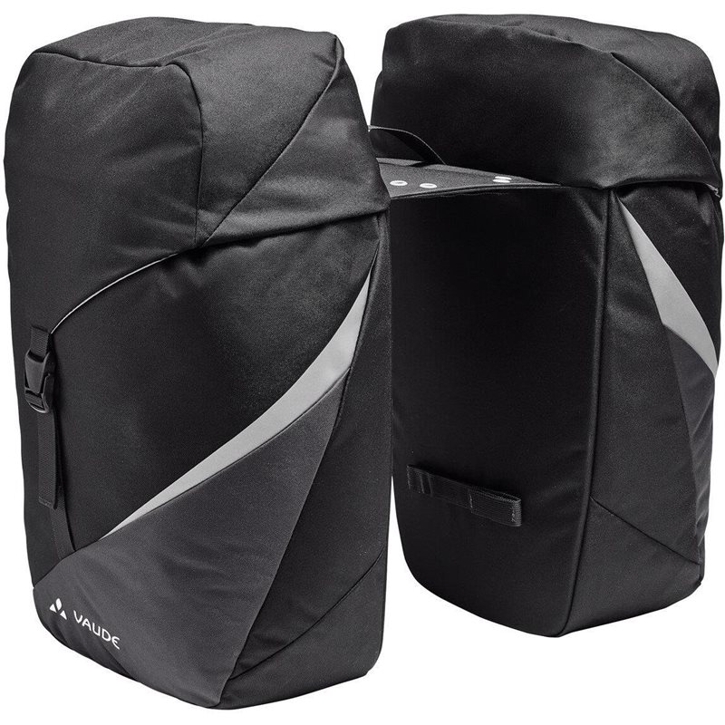 ota kaikki tarpeellinen mukaan rentoon pyöräilypäivään tällä tilavalla kaksiosaisella pyörälaukulla vaude twinroadster double bike bag. 52 litran kokonaiskapasiteetti tarjoaa runsaasti tilaa, ja laukut kiinnittyvät sekä irtoavat vaivattomasti pyörän tavaratelineestä valmiiksi asennettujen tarranauhojen ansiosta. klassinen taitettava kansi sulkee laukut, ja alapuolella oleva nyörikiristys auttaa pakkaamaan tavarat tiiviisti. suunnitteluun integroidut heijastimet lisäävät näkyvyyttä, ja säänkestävä suojapeite täydentää tämän 100 % kierrätetystä polyesteristä valmistetun tuplalaukun ominaisuuksia.
