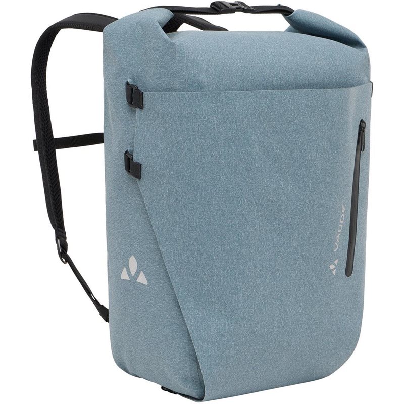 Täysin vedenpitävä ja moderni VAUDE ReCycle Transformer 26 tekee vaikutuksen monipuolisella muotoilullaan – täydellinen niin työmatkoille kuin pidemmillekin retkille. 26 litran tilavuus tarjoaa runsaasti tilaa, ja reppu on varustettu pehmustetulla selkäosalla, ergonomisilla olkahihnoilla sekä rintaremillä. Reppu muuntautuu nopeasti ja helposti sivulaukuksi polkupyörääsi varten: olkahihnat voi piilottaa repun taakse ja kiinnittää suojakannen alle. Laukku tarjoaa runsaasti säilytystilaa älykkäästi suunnitellussa sisäosassa, johon kuuluu pehmustettu tietokonelokero 13,3-tuumaiselle kannettavalle (33 × 23 × 2,5 cm) sekä erilliset taskut puhelimelle, kynille ja muille tarvikkeille. Kuormasta riippuen laukkua voi sivusuunnassa tiivistää kolmessa eri portassa.
