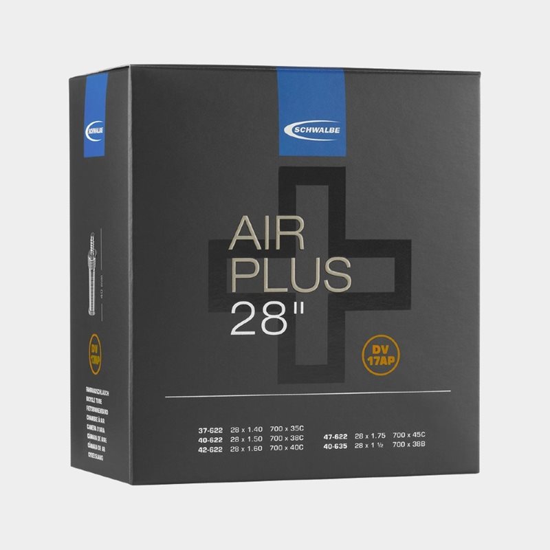 Schwalbe Air Plus on sisärengas henkilöille, jotka toivovat välttävänsä renkaiden tiheää pumppaamista. Se on valmistettu 100 % kierrätetystä kumista ja on erityisen paksua, mikä vähentää rengasrikkojen riskiä sekä ilmankarkailua. Kumiseinämä on jopa 70 % paksumpi kuin perinteisissä sisärenkaissa (1,5 mm seinämäpaksuus), minkä ansiosta ilmanpitävyys on 50 % parempi. Tämä sisärengas soveltuu erityisesti sähkö- ja tavarapyöriin, joissa vaatimukset ovat korkeammat ja painon merkitys vähäisempi — tai jos haluat yksinkertaisesti vältyä usein toistuvalta renkaiden pumppaamiselta. Paksumman kumin vuoksi sisärengas on noin 100-150 grammaa tavallista sisärengasta painavampi, mikä useimmille on merkityksetön ero.