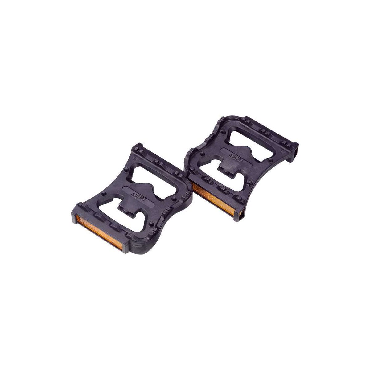 BBB Feetrest on pari älykkäitä polkimia, jotka istuvat toiselle puolelle SPD-yhteensopivaa poljinta ja mahdollistavat tavallisten kenkien käytön ajaessasi SPD-polkimilla.