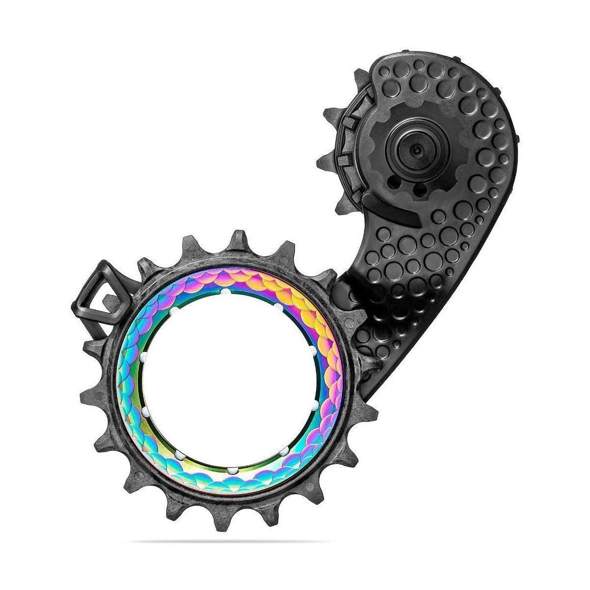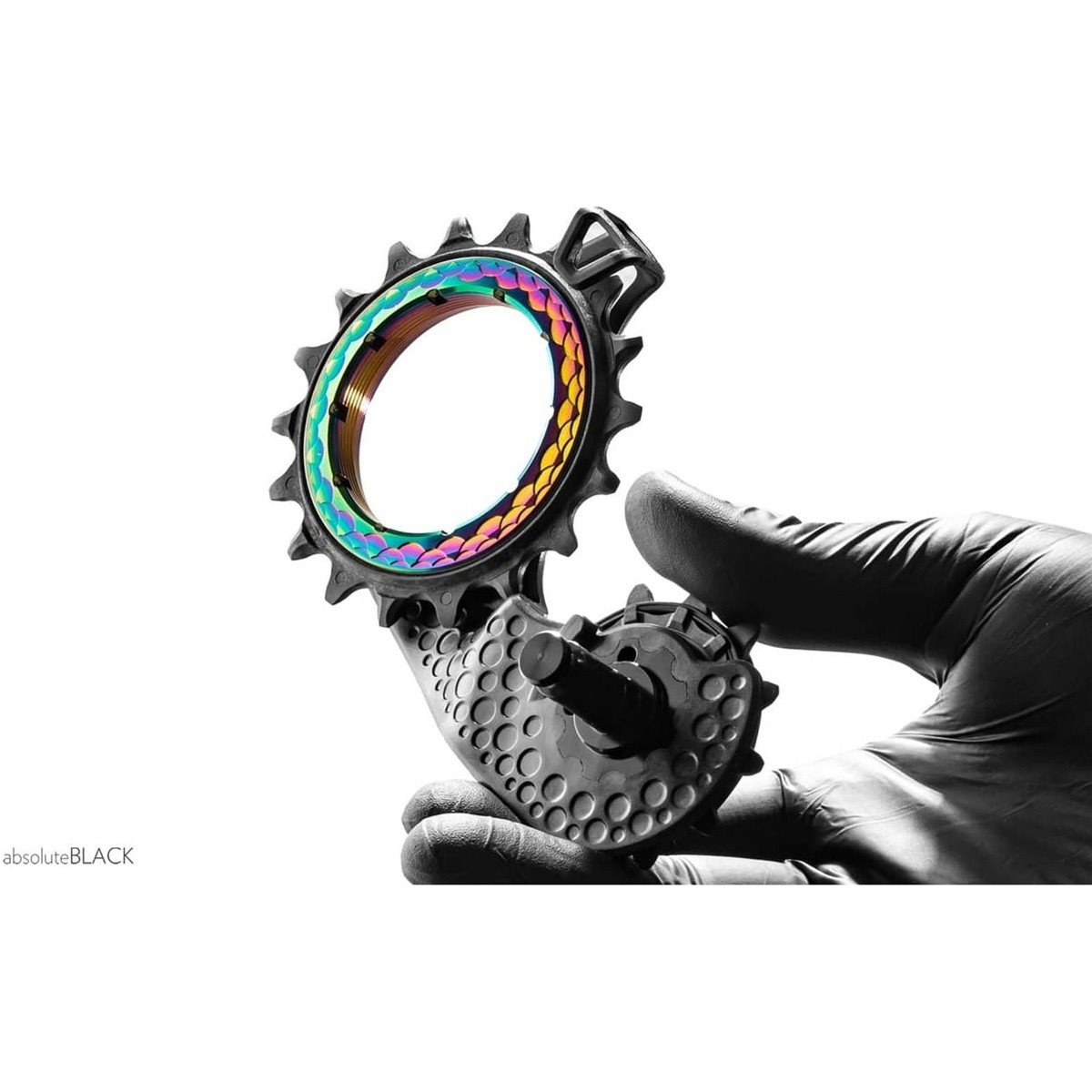 absoluteBLACK HOLLOWcage Shimano Ultegra R8100 -vaihtajahäkkiin tarjoaa hiljaisemman vaihtamisen ja ylivoimaisen ketjun tehokkuuden.