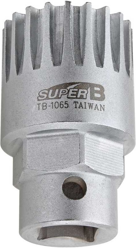 Super B TB-1065 keskiötyökalu käy Shimano, ISIS Drive, FSA, Race Face, Truvativ merkkien keskiöille, joiden sisäpuolella on 20-hampaiset keskiökupit. Sitä käytetään 24 mm avaimen tai 1/2" räikkävarren kanssa.