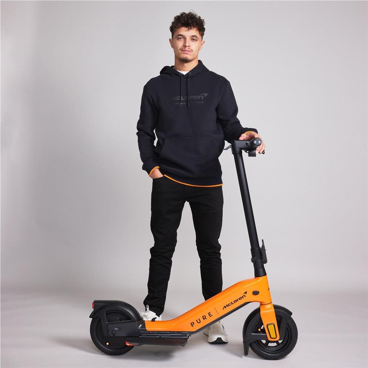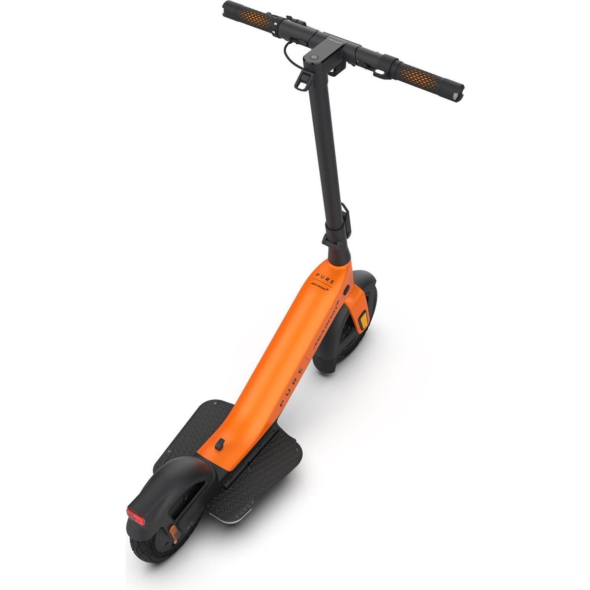 Vikkelä sähköpotkulauta PURE Advance + McLaren tarjoaa ainutlaatuisen innovatiivisen ajoasennon ja selvästi virtaviivaisemman muotoilun, jotta voit liikkua vaivattomasti vilkkaissa F1-varikoissa ja muissa kaupunkiympäristöissä. Sen tyylikäs olemus korostaa urheilullista muotoilua, joka on todella kehityksen kärjessä. Sen älykkäästi kokoontaittuva ohjaustanko, jalkatyynyt ja ohjaustanko tekevät siitä 70 % virtaviivaisemman kuin tavallinen sähköpotkulauta. Tinkimättä lainkaan suorituskyvystä se säästää paljon arvokasta tilaa ja integroituu siten täysin saumattomasti kiireiseen kaupunkielämääsi.
