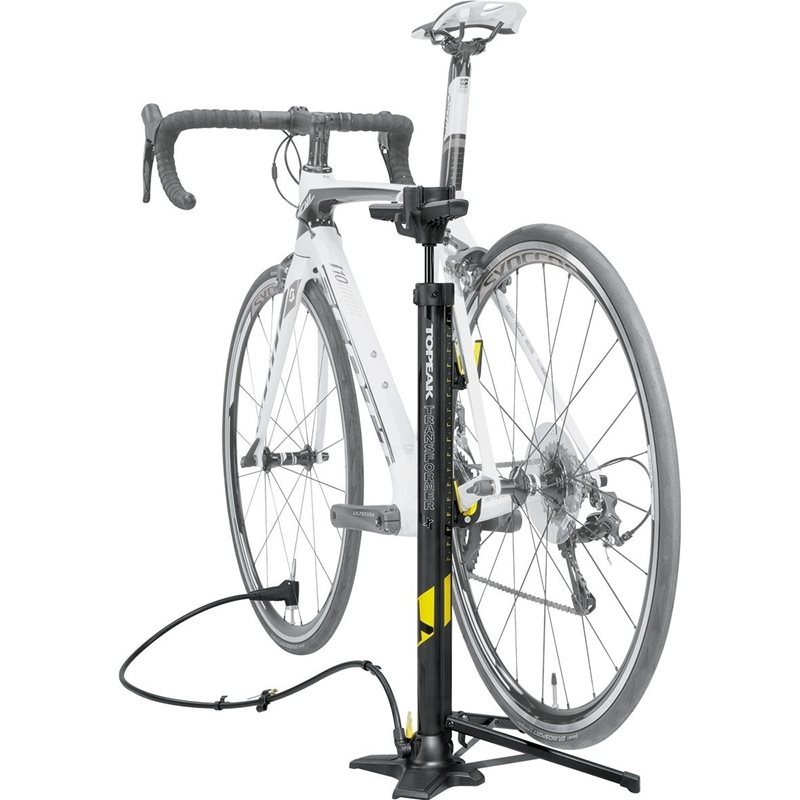 Vakaa ja siirrettävä Topeak Transformer EUP yhdistää lattiapumpun ja telineen, mikä tekee siitä täydellisen vaihtoehdon pyöräsi huoltamiseen ja säilyttämiseen. Laajennettavien jalkojensa ja tukevien säädettävien koukkujensa ansiosta se tarjoaa vankan alustan myös painaville MTB-pyörille tai sähköpyörille.