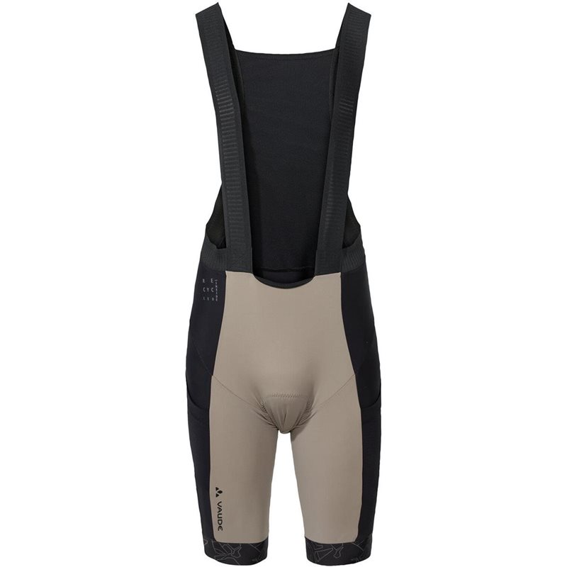 For hard and fast gravel bike tours in warm weather! Our short Kuro bibs for men score with two mesh side pockets and are exceptionally comfortable to wear. This is guaranteed by an optimized design with significantly reduced stretch seams; the stretch fabric ensures good compression and the seamless straps are perforated for best breathability with elastic mesh inserts at the back. A siliconized print at the leg cuffs with no inner seam and the VAUDE X-Pad chamois specially developed for gravel biking provide optimum comfort on the saddle. The tights reduce chafing so you can concentrate on the fun of your (long distance) ride. The tights are anatomically pre-shaped for a perfect fit for men. The material of the universal men's bib shorts is very abrasion resistant, breathable and fast drying. The Kuro Bib Tights are perfect for pairing with other parts of the Kuro family: the Kuro Full Zip Jersey, Kuro Air Jacket, and Kuro Shorts. They're made in Europe from primarily recycled, bluesign certified materials. The VAUDE Green Shape label stands for environmentally-friendly, functional products made from sustainable materials.