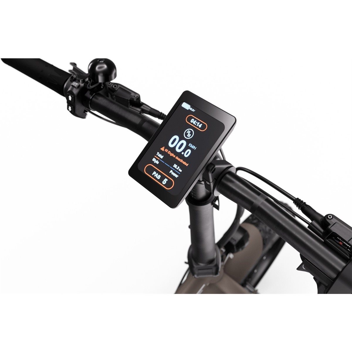 Tyylikkäästi integroitu ja keskelle sijoitettu akku on luonnollisesti kannettava ja latautuu yhtä helposti rungossa kuin toimistolla tai koulussa. Akku käyttää paitsi sähkömoottoria, myös sähkömopon valaistusta, ja pimeän aikaan sytytät valot nopeasti ja helposti näytön kautta.